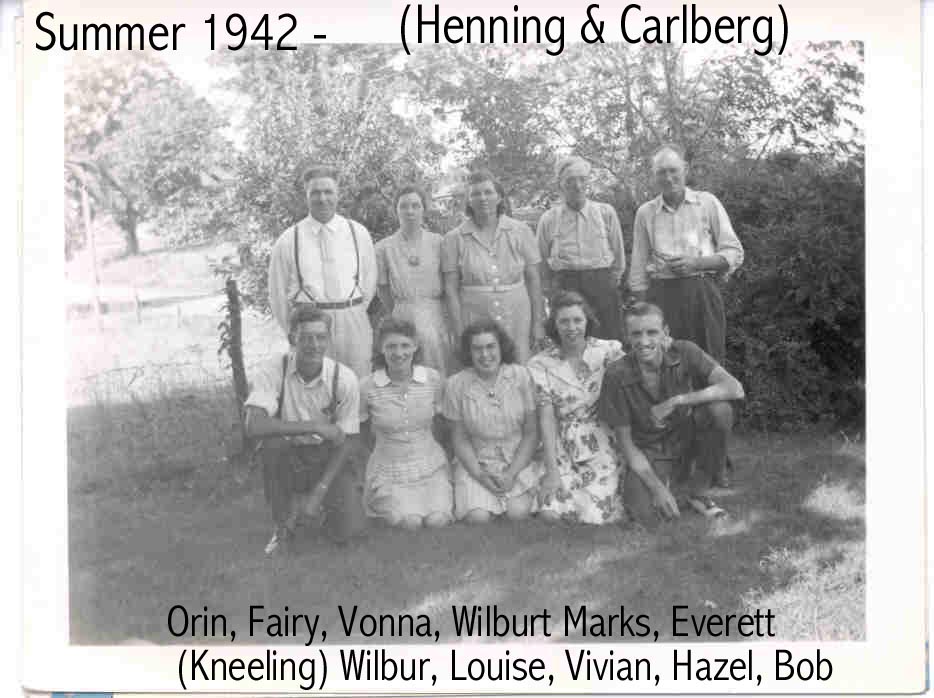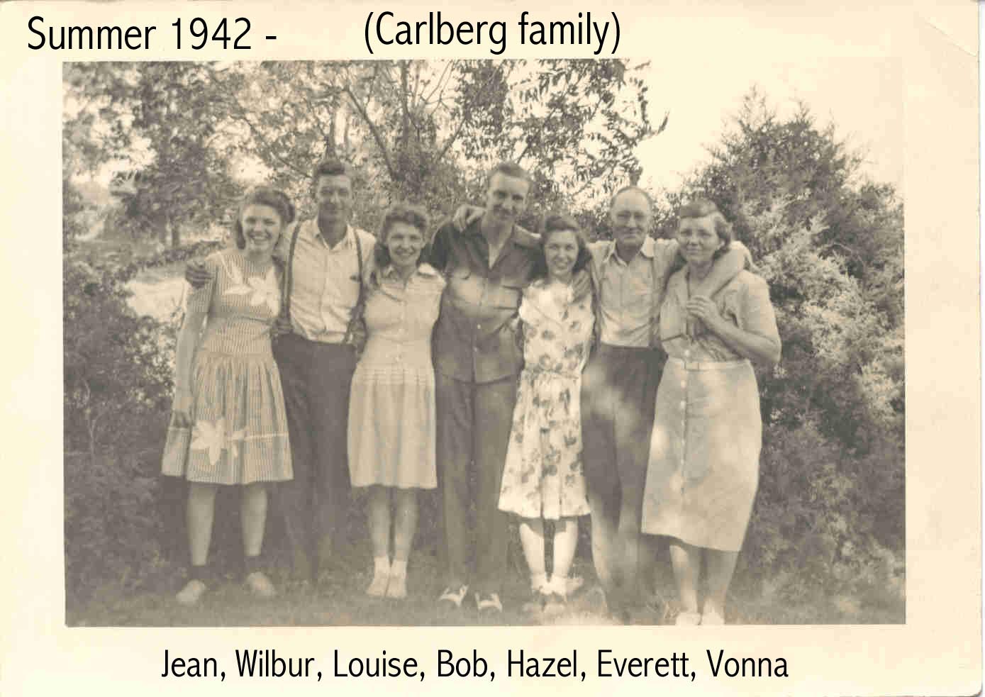 1942 - Carlbergs, Everett & Vonna with their children Bob & wife Hazel, Louise & husband Wilbur Quick, & Jean