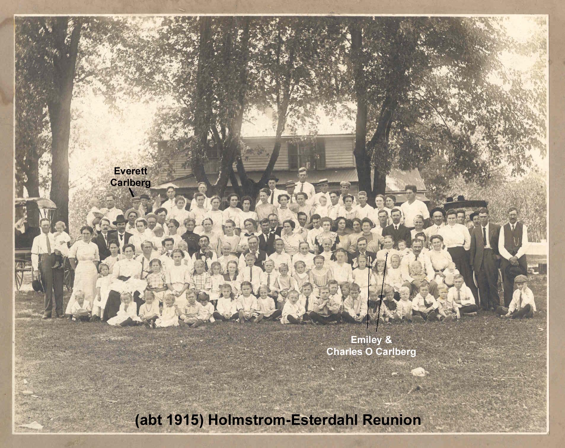 Abt 1915 - Holmstrom-Esterdahl Reunion with Emiley, Charles O Carlberg & son Everett