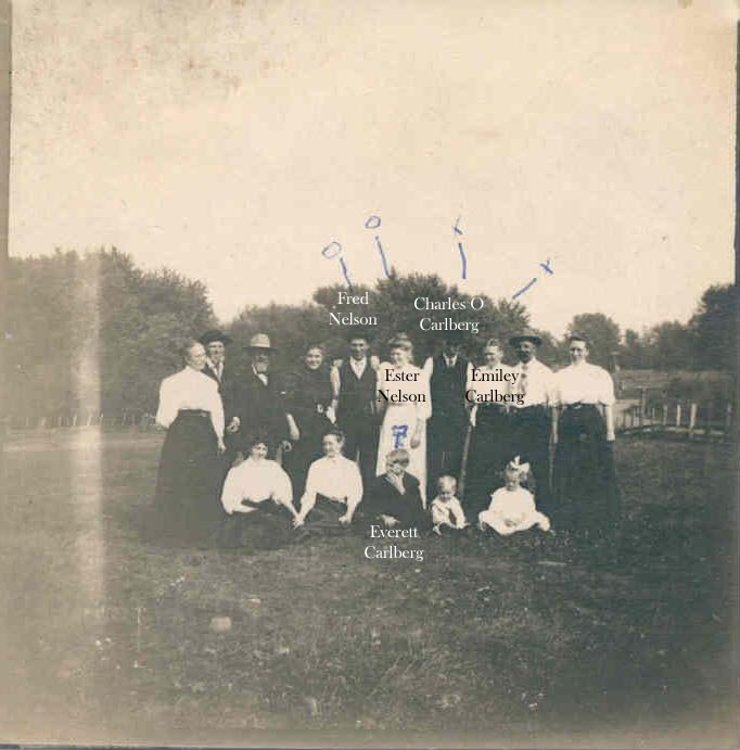 1904 - Emiley, Charles O, Everett Carlberg, dau. Esther Nelson, Fred Nelson & others