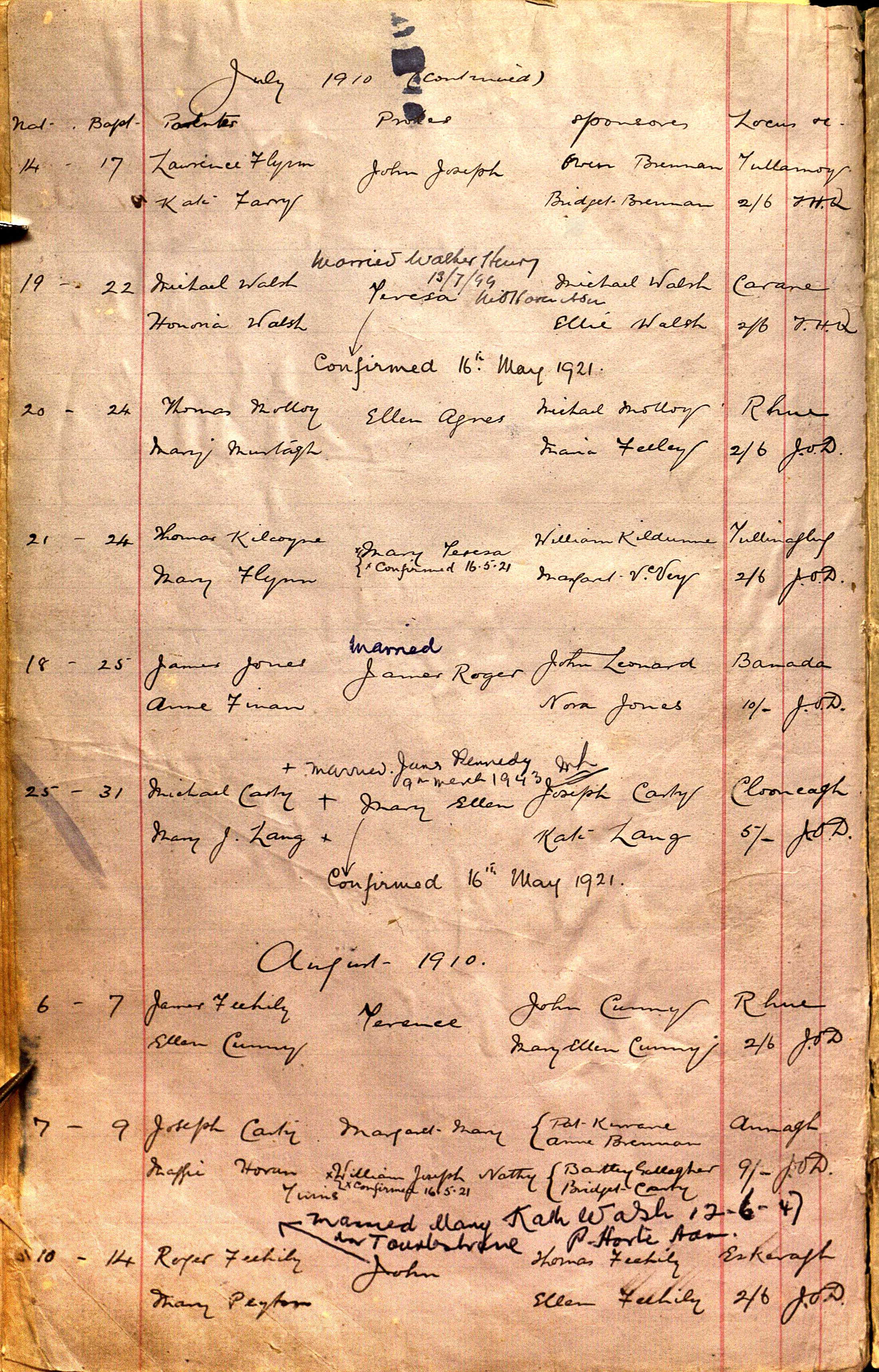 Walter Henry and Teresa Walsh were married on 10 Jul 1944 in Toulestrane, County Sligo, Ireland. They had 2 children. | |||||